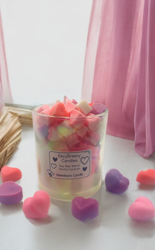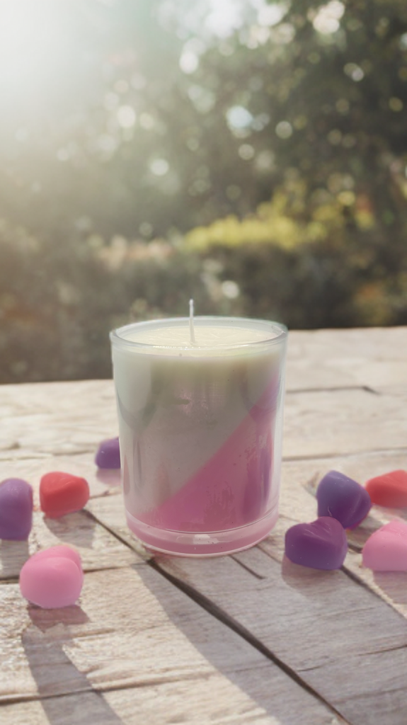 This project features candles adorned with heart-shaped wax melts, creating a charming and heartwarming ambiance. The colorful wax pieces add a touch of joy and love to the candles, making them perfect for special occasions and heartfelt gifts.